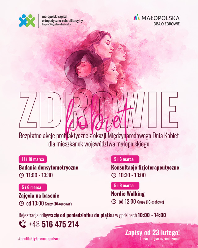 Profesjonalna opieka fizjoterapeutyczna jest kluczowym elementem procesu leczenia i szybkiego powrotu do zdrowia! Bardzo dobre wyniki leczenia w Małopolskim Szpitalu Ortopedyczno-Rehabilitacyjnym są efektem dobrej współpracy miedzy lekarzem, fizjoterapeutą i Pacjentem. To właśnie jest nasza filozofia - tylko idealna współpraca wszystkich stron pozwala osiągnąć najlepsze wyniki.